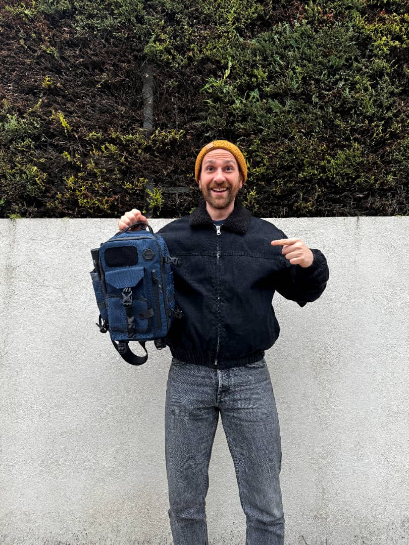 That's when he discovered the 11L sling—the perfect sweet spot. Backpack capacity. Sling convenience. Fast access without stopping.