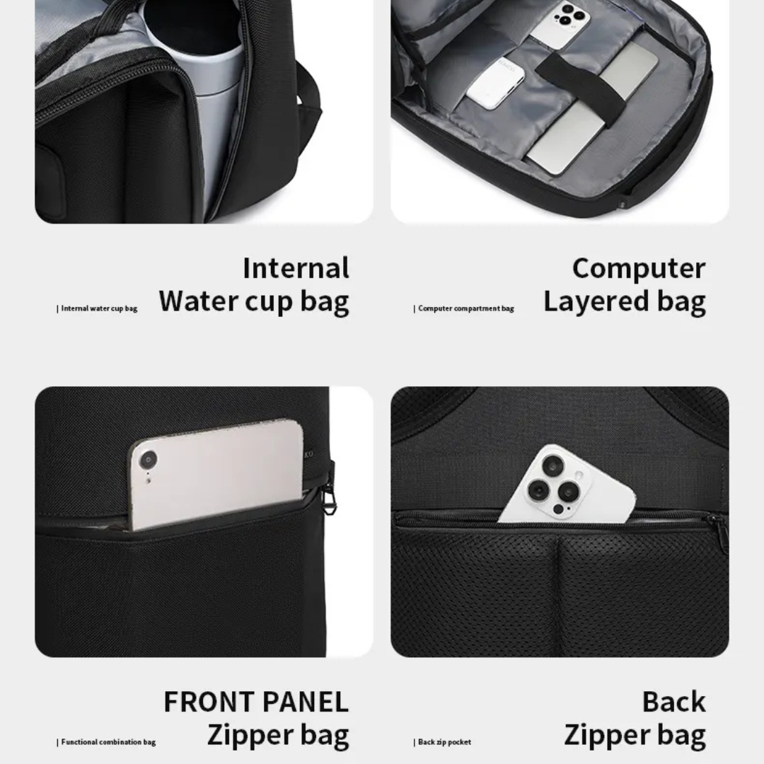 Hidden anti-theft pockets keep valuables secure. Integrated USB charging port keeps devices powered without unpacking. Quick-access external pocket for keys, wallet, phone—the things you grab fifty times a day.